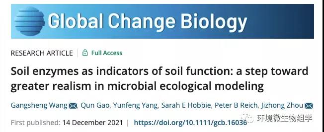 2021年12月14日,权威学术期刊Global Change Biology发表相关研究论文,武汉大学水资源与水电工程科学国家重点实验室/俄克拉荷马大学王纲胜为该论文第一作者兼通讯作者,俄克拉荷马大学周集中教授为共同通讯作者,论文题目:Soil enzymes as indicators of soil function: a step toward greater realism in microbial ecological modeling。