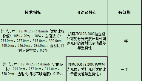 紫外可见光区透射比标准物质GBW(E)130314